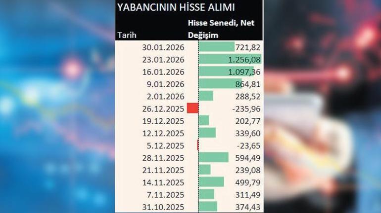 BIST 100 Endeksinin 13.521 puana ulaşarak aylık bazda yüzde 12.46 getiri sağladığı bir süreçte, yabancılar ocak ayının son haftasında toplamda 1.6 milyar dolarlık alım gerçekleştirdi. Tahvil ve hisse senedi tarafındaki yoğun ilgi, TL varlıkların küresel piyasalardan farklı bir patikada seyrini sürdürmesini sağlıyor.