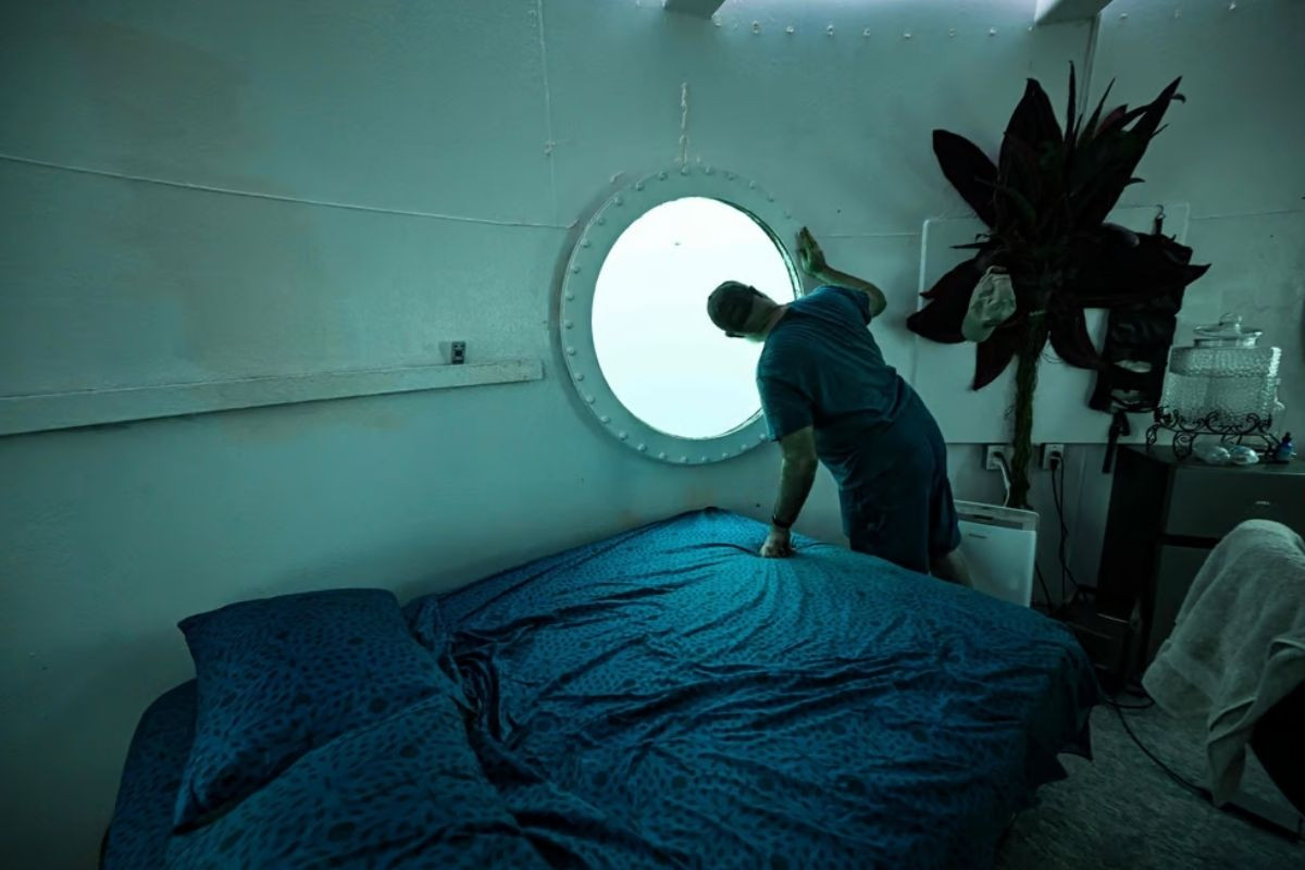 Koch'un kapsülünde modern yaşamın çoğu unsuru vardı: yatak, tuvalet, televizyon, bilgisayar ve internet; hatta bir egzersiz bisikleti bile.