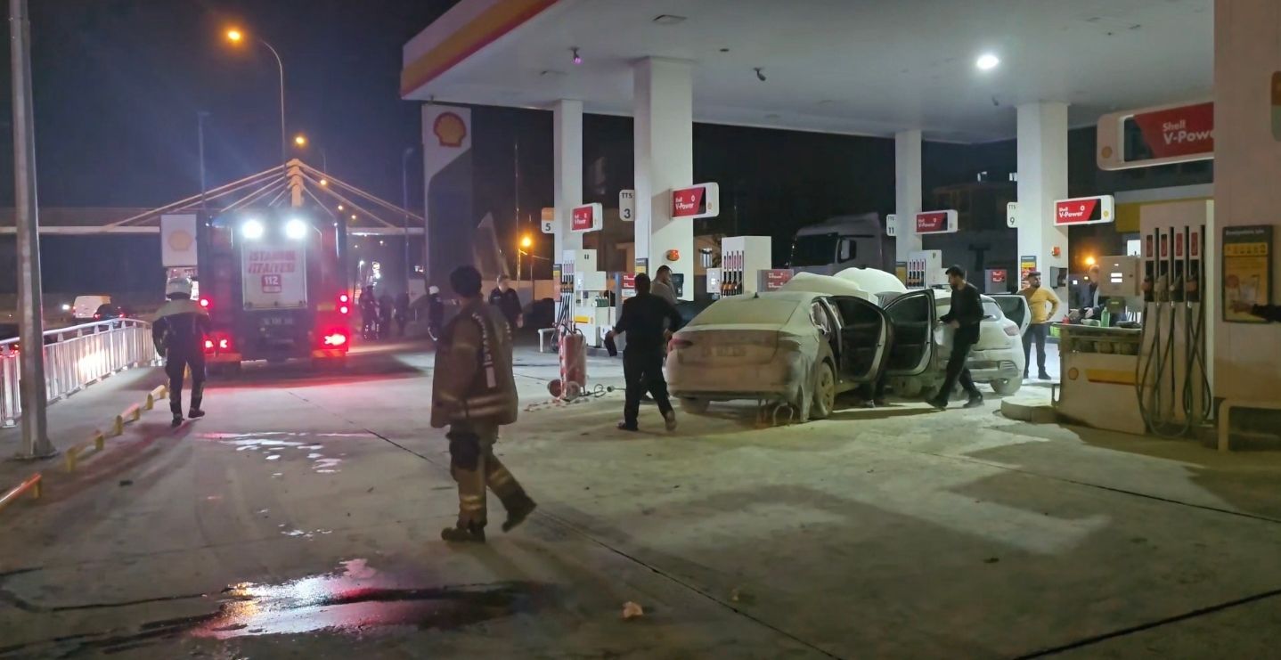 Çarpmanın hemen ardından, 34 GCD 639 plakalı otomobilde yangın çıktı. Akaryakıt pompalarının yanında başlayan yangın, istasyonda kısa süreli paniğe neden oldu.