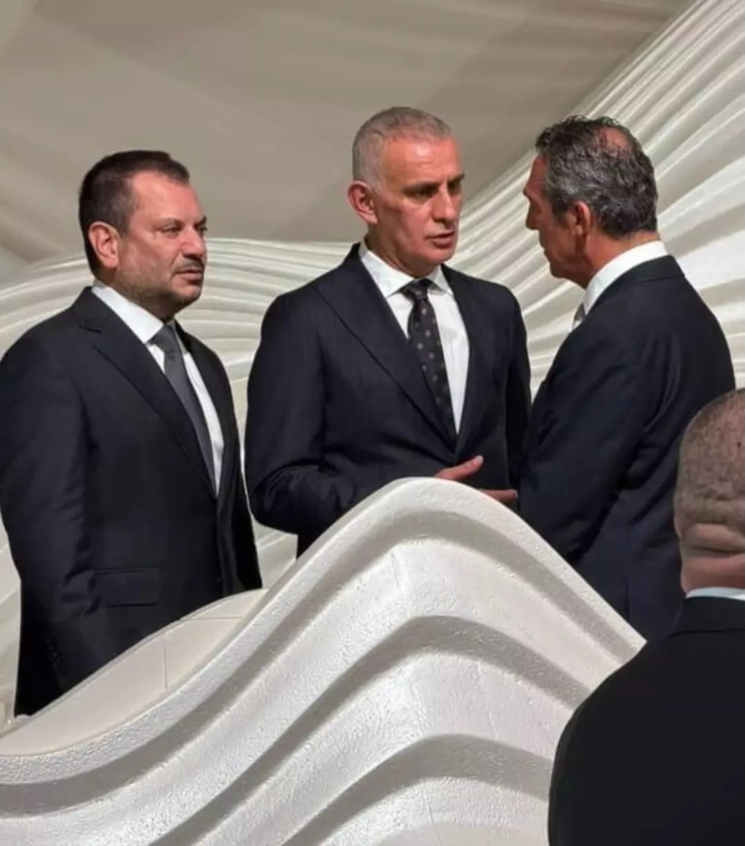 Düğünde Ali Koç ile başkanlığı döneminde gerginlik yaşadığı Trabzonspor Başkanı Ertuğrul Doğan'ın da ayak üstü kısa bir sohbet gerçekleştirdiği dikkat çekti