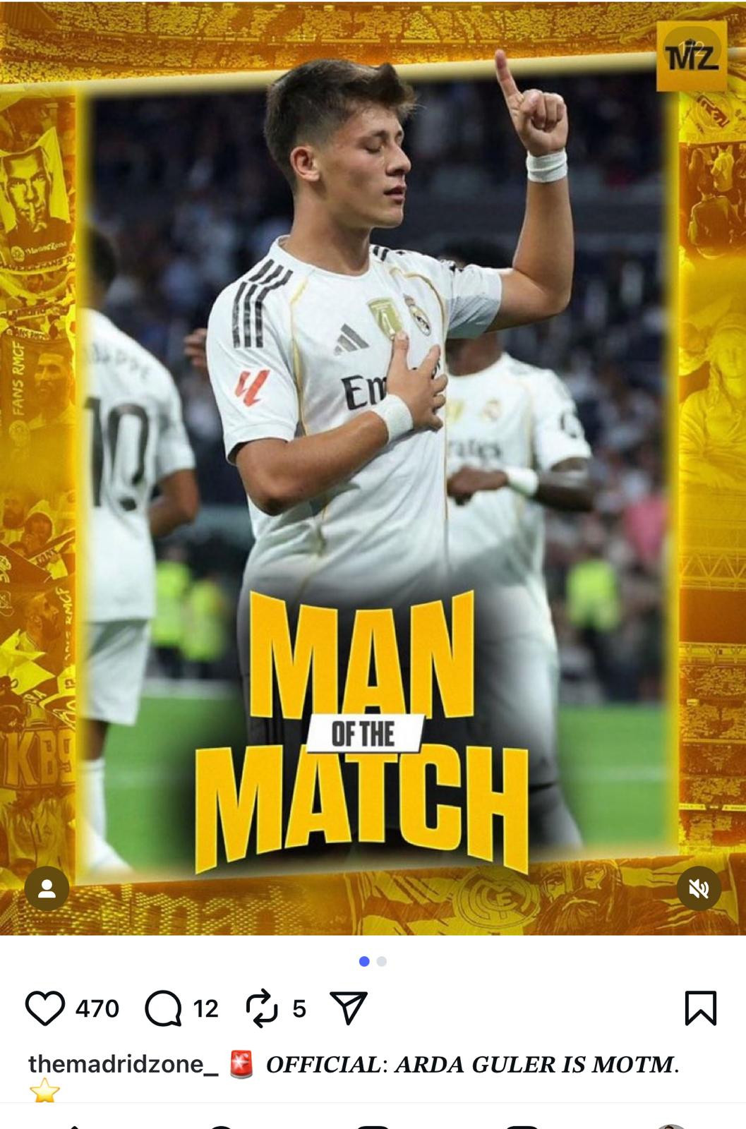 Arda Güler, Real Madrid-Juventus maçında üstün performansıyla maçın adamı seçildi