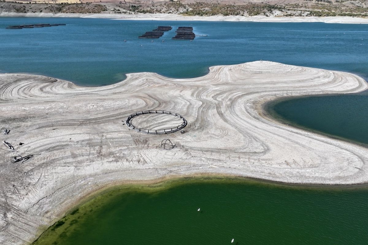 Su seviyesinin düşmesiyle barajda adacıklar oluştu, eski Emeğil köyündeki cami ve evlerin enkazları gün yüzüne çıktı, bazı balık kafesleri zemine indi.