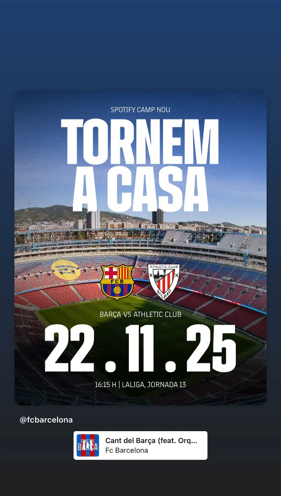 Barcelona, 22 Kasım Cumartesi günü Laliga'da oynanacak maçla evinde seyircisiyle buluşacak. İlk maç ise Athletic Bilbao ile oynanacak.