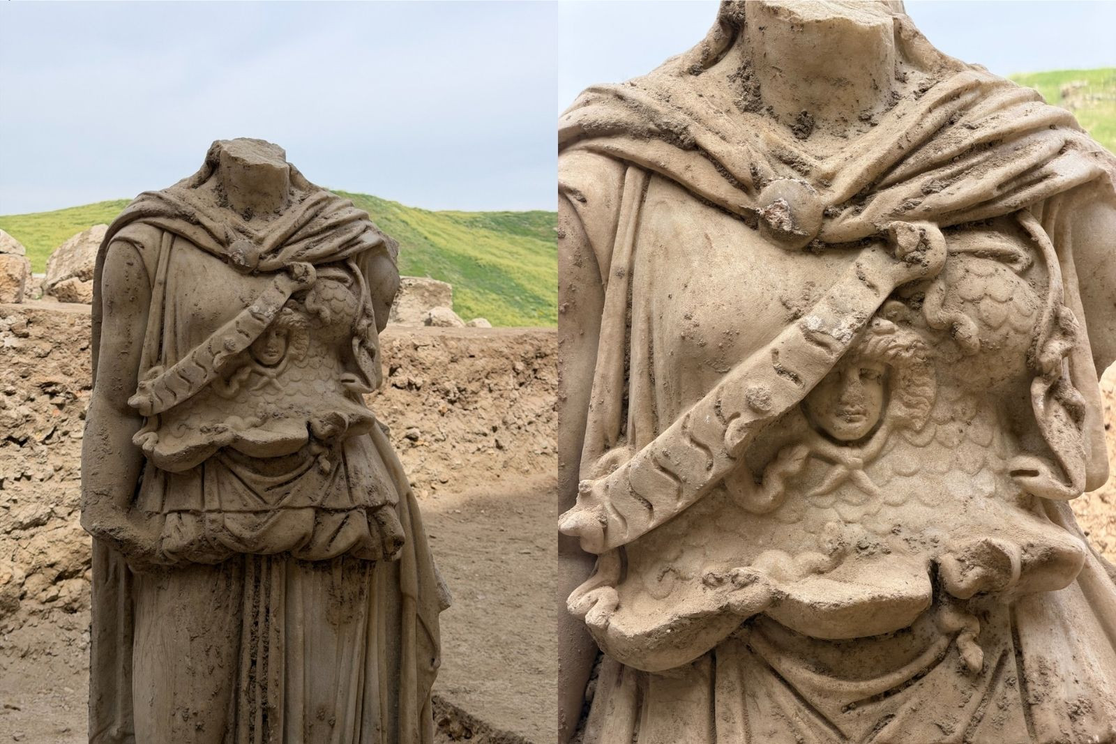 Denizli’de yer alan Laodikeia Antik Kenti’ndeki kazı ve restorasyon çalışmaları sırasında arkeoloji dünyasını heyecanlandıran yeni bir buluntuya ulaşıldı. Batı Tiyatrosu sahne binasında yürütülen çalışmalarda, yaklaşık iki metre uzunluğunda beyaz mermerden yapılmış bir Athena heykeli gün yüzüne çıkarıldı.