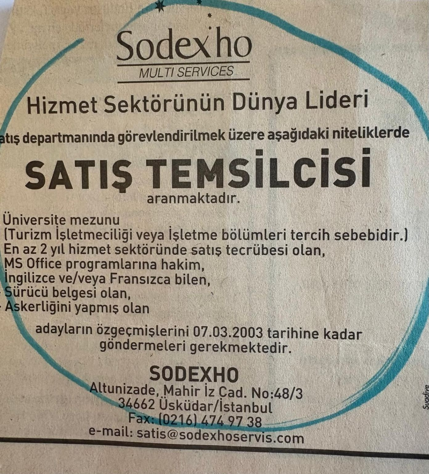 1966 yılında Fransa’da kurulan, kurumsal yemek, temizlik ve teknik hizmetleriyle tanınan, yaptığı uluslararası satın almalarla küresel bir güce dönüşen Sodexo, 1992 yılından beridir Türkiye’de… Bu yıl başında şirketin CEO’luk koltuğuna Bora Koçak atandı. Koçak resmen görevine başladıktan sonra dün sosyal iş ağında adeta başarı öyküsünün başlangıcını temsil eden bir fotoğraf paylaştı. Bu şirketin satış temsilcisi aradığına dair 2003 tarihli bir gazete ilanıydı. Bu ilanla şirkete katılan Koçak, 22 yıl sonda şirketin lideri oldu.