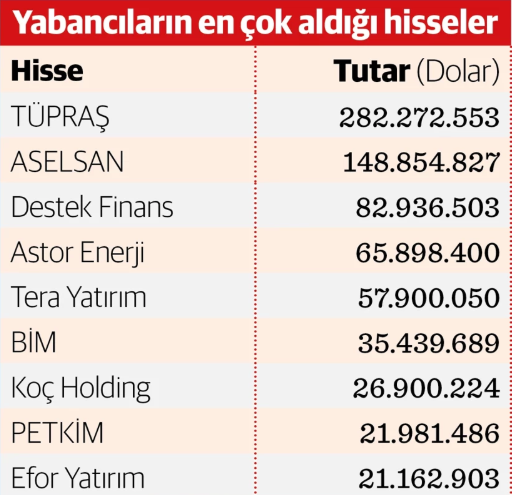 Yabancılar mart ayında ağırlıklı olarak bankacılık sektörü hisselerinde satış yaparken savaş ortamından ‘olumlu’ etkilenen şirket hisselerinde de alıma geçti. Petrol fiyatlarındaki yükseliş nedeniyle Tüpraş, mart ayında yabancı yatırımcıların en çok alım yaptığı hisse olarak öne çıktı. Yabancılar mart ayında net 282.2 milyon dolarlık Tüpraş hissesi aldı.