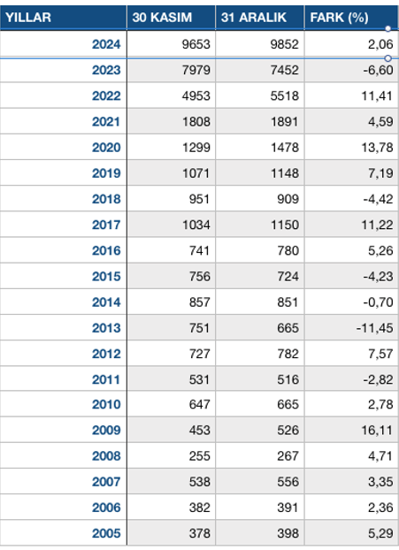 Şöyle ki endeks son 20 yılın 14’ünde aralık ayında yükselmiş, 1 yıl yerinde saymış, 5 yıl da düşmüş.
