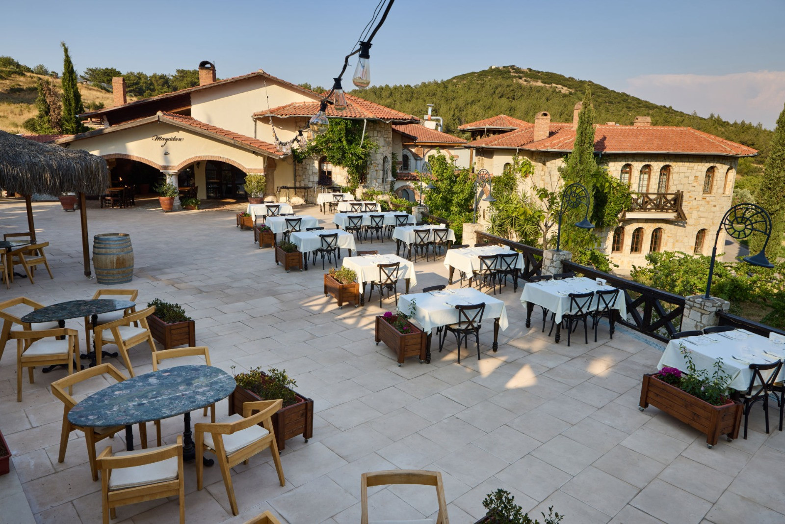 Barrack, ziyaretin ardından öğle yemeği için Gökçealan (Burgaz) Köyü yakınlarında Bilge ve eşi Gülgün Yamen tarafından kurulan “bağ içinde konaklama” konseptli 7 Bilgeler’de bulunan Mayadan Restoranı tercih etti.