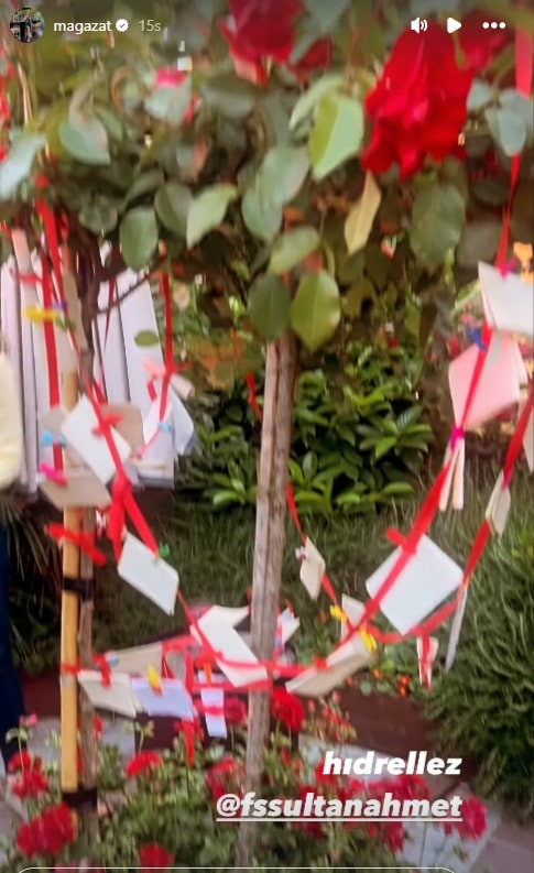 Sosyetik güzel Melis Ağazat bayramı arkadaşlarıyla Fatih Sultan Ahmet Camii'nin etrafında gerçekleşen etkinlik alanında kutladı. Dilek kağıdını kırmızı kurdela ile ağaca bağlayan Ağazat o anları sosyal medya hesabından paylaştı.