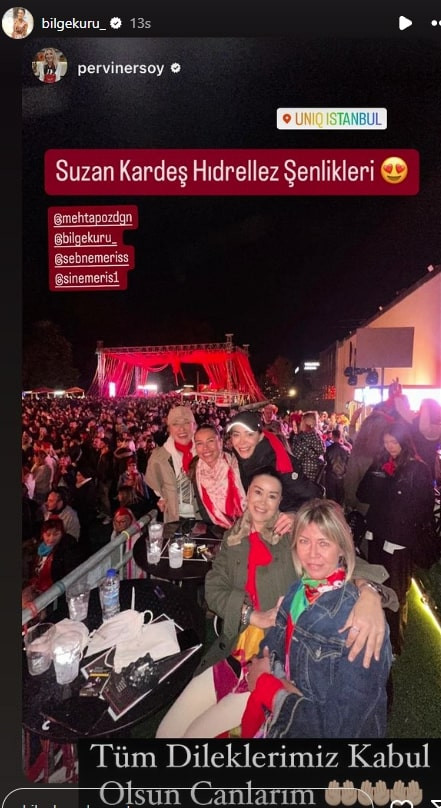Kültür ve Turizim Bakanı Mehmet Ersoy'un eşi ve cemiyette tanınan Bile Kuru, bayramı kutlamak için şarkıcı Suzan Kardeşler'in sahne aldığı Hıdırellez şenliğine katıldı.