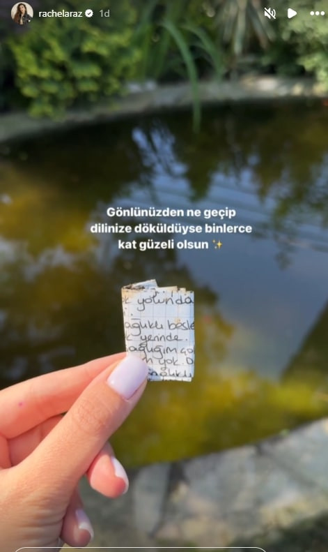 İlaç firması sahibi iş insanı Sami Kirespi ile evli olan sosyal medya fenomeni Rachel Araz Kirespi, Hıdırellez dileklerini bir kağıda yazıp toprağa gömdü. Sabah saatlerinde dileğini gömülü topraktan çıkarıp denize atan Araz bol bol dua etti.