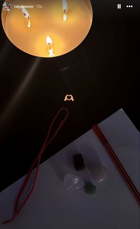 Sosyetik isim Talya Sever ise dileklirini beyaz bir kağıda kırmızı kalemle yazıp mum yaktı. Değerli taşlarını da yanında bulunduran Sever, kağıdı kırmızı ip ile sıkı sıkı bağladı.
