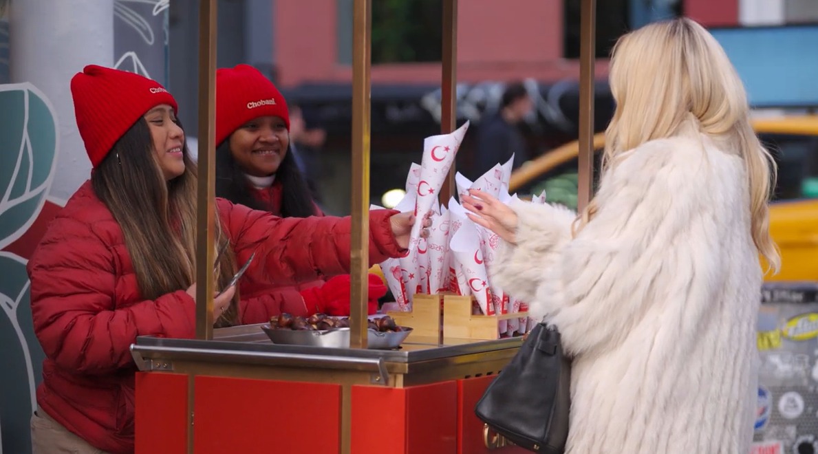 Chobani Cafe, Aralık ayı boyunca New York’un SoHo bölgesinde Türkiye’nin kış kültürüne ait ögeleri sunmaya başladı. Kafenin önünde, Türkiye’deki örnekleriyle benzer tasarıma sahip bir kestane arabası yer alıyor. Türkiye’de kış aylarının sokak lezzetlerinden biri olan kestane, bu düzenekle New York sokaklarında satışa sunuluyor.