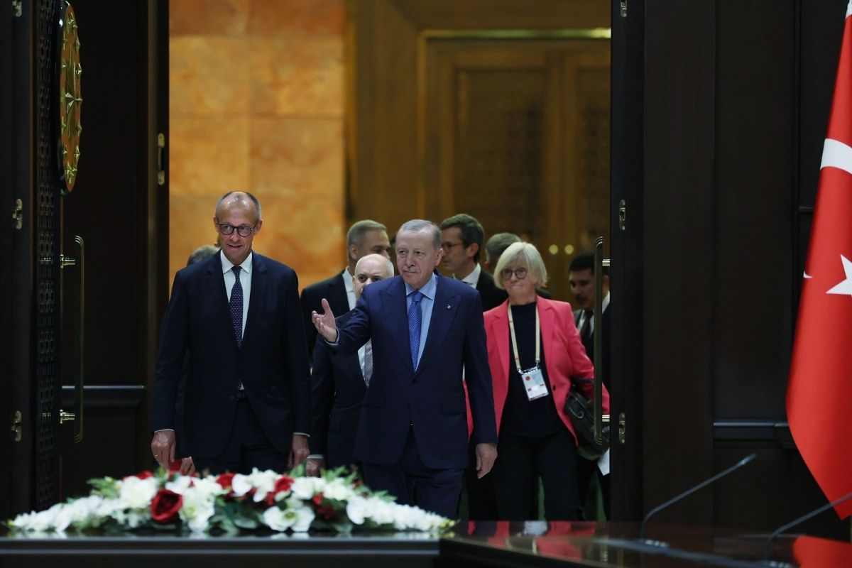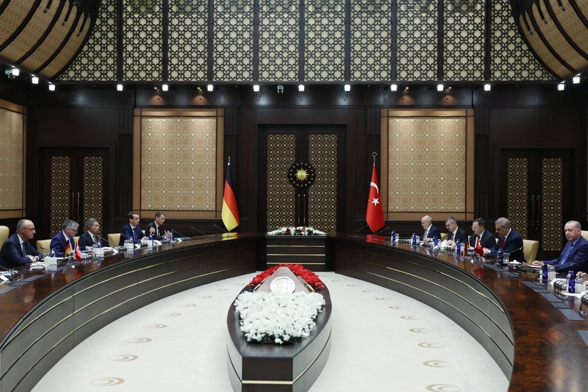 Cumhurbaşkanlığı Külliyesi'nde baş başa görüşen Cumhurbaşkanı Erdoğan ve Almanya Başbakanı Friedrich Merz, daha sonra iki ülke arasındaki heyetler arası görüşmeye başkanlık yaptı.