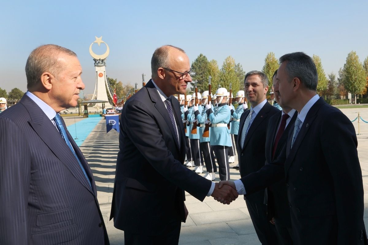 Cumhurbaşkanı Erdoğan Almanya Başbakanı Merz'i resmi törenle karşıladı ve ikili heyetler arası görüşmeye başkanlık etti