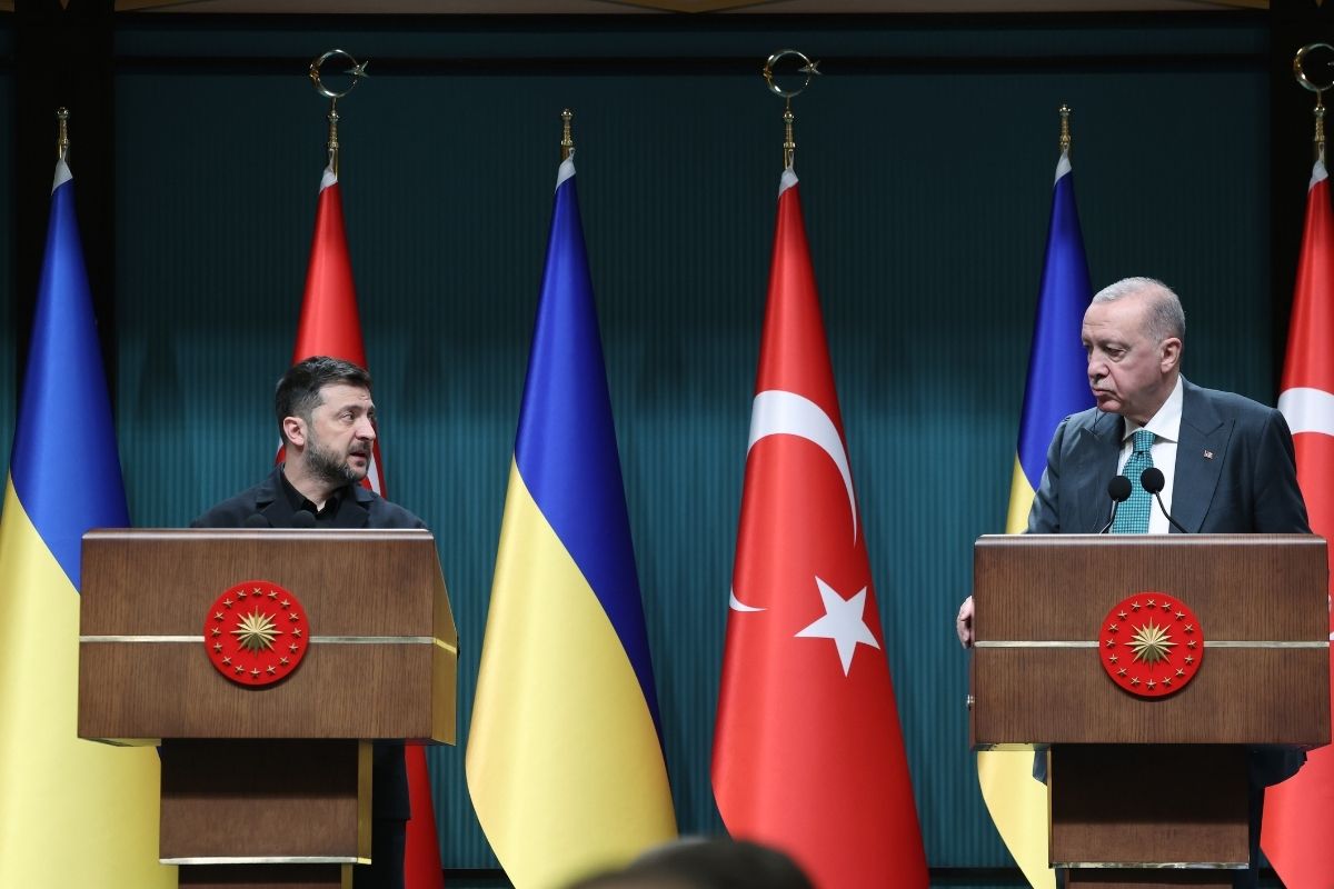 Cumhurbaşkanı Recep Tayyip Erdoğan, Zelenski'yi Cumhurbaşkanlığı Külliyesi'nde resmi törenle karşıladı. Liderler ikili görüşmelerin ardından ortak basın toplantısı düzenledi. Cumhurbaşkanı Erdoğan şunları söyledi:
