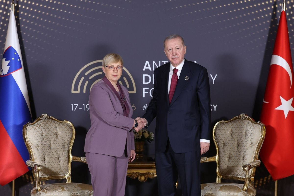 Cumhurbaşkanı Recep Tayyip Erdoğan, Belek Turizm Merkezi'ndeki NEST Kongre ve Fuar Merkezi'nde devam eden "Antalya Diplomasi Forumu" kapsamında, Slovenya Cumhurbaşkanı Natasa Pirc Musar ile bir araya geldi.