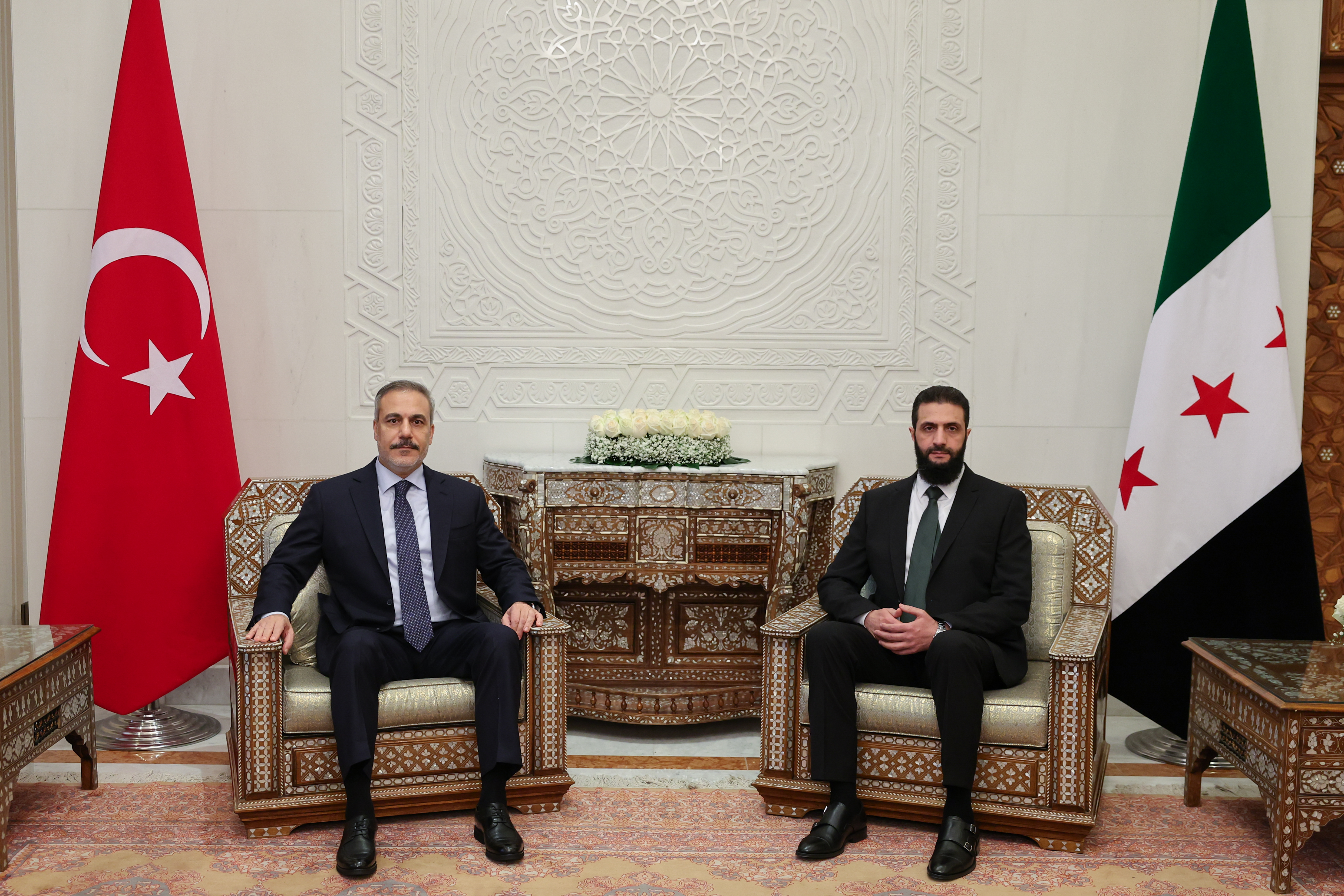 Dışişleri Bakanı Hakan Fidan, Suriye’nin başkenti Şam’da Suriye’deki yeni yönetimin lideri Ahmed eş-Şera ile bir araya geldi.