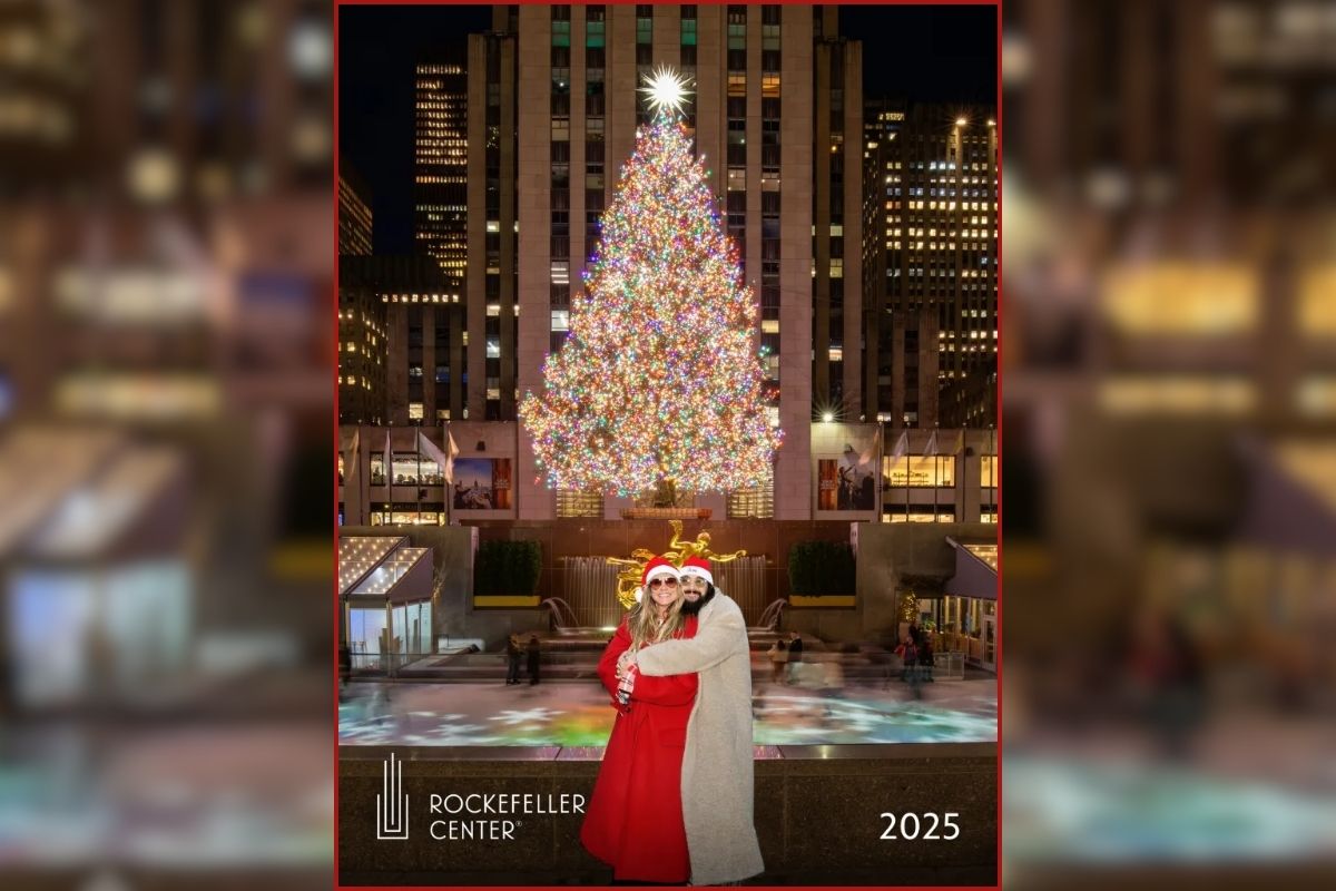 Heidi Klum ve eşi Tom Kaulitz, Noel arifesinde Rockefeller Noel ağacının önünde poz verdi.