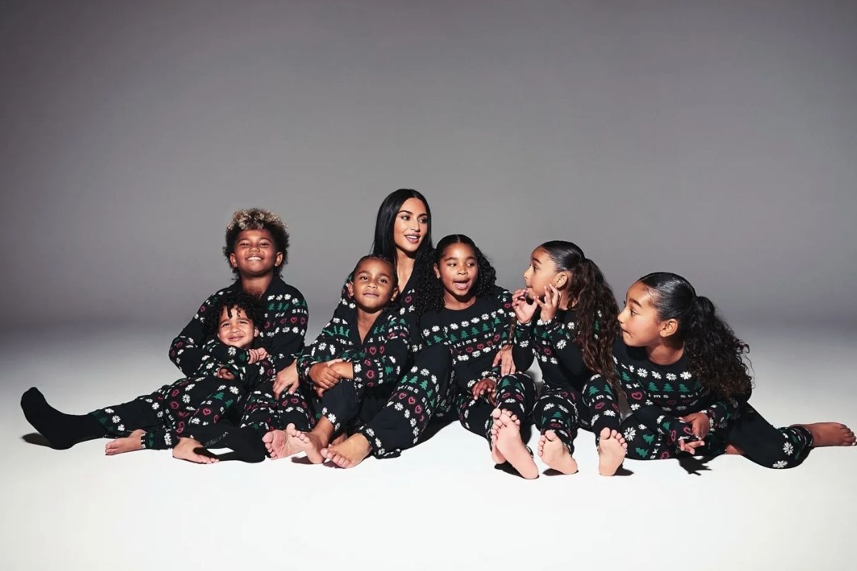 Kim Kardashian, çocuklarıyla aynı pijamalarla Noel temalı bir fotoğraf çektirdi.