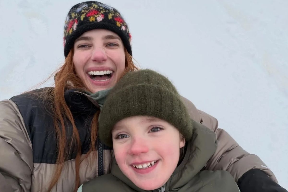 Emma Roberts, Noel arifesinde oğluyla birlikte kızakla kaydı.
