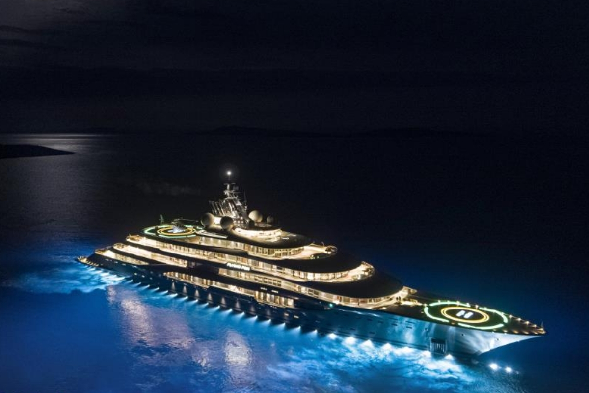 İki katlı, cryo-sauna, masaj odaları, wellness laboratuvarı… Üst güvertede helikopter pisti. Arka güvertede ikinci bir helideck.