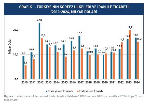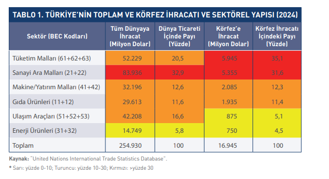 Raporun giriş kısmındaki verilere göre, 2024 itibarıyla Türkiye’nin Körfez ülkeleri ve İran’a yönelik ihracatı yaklaşık 16,9 milyar dolar düzeyinde olup bu tutar ülkemizin toplam