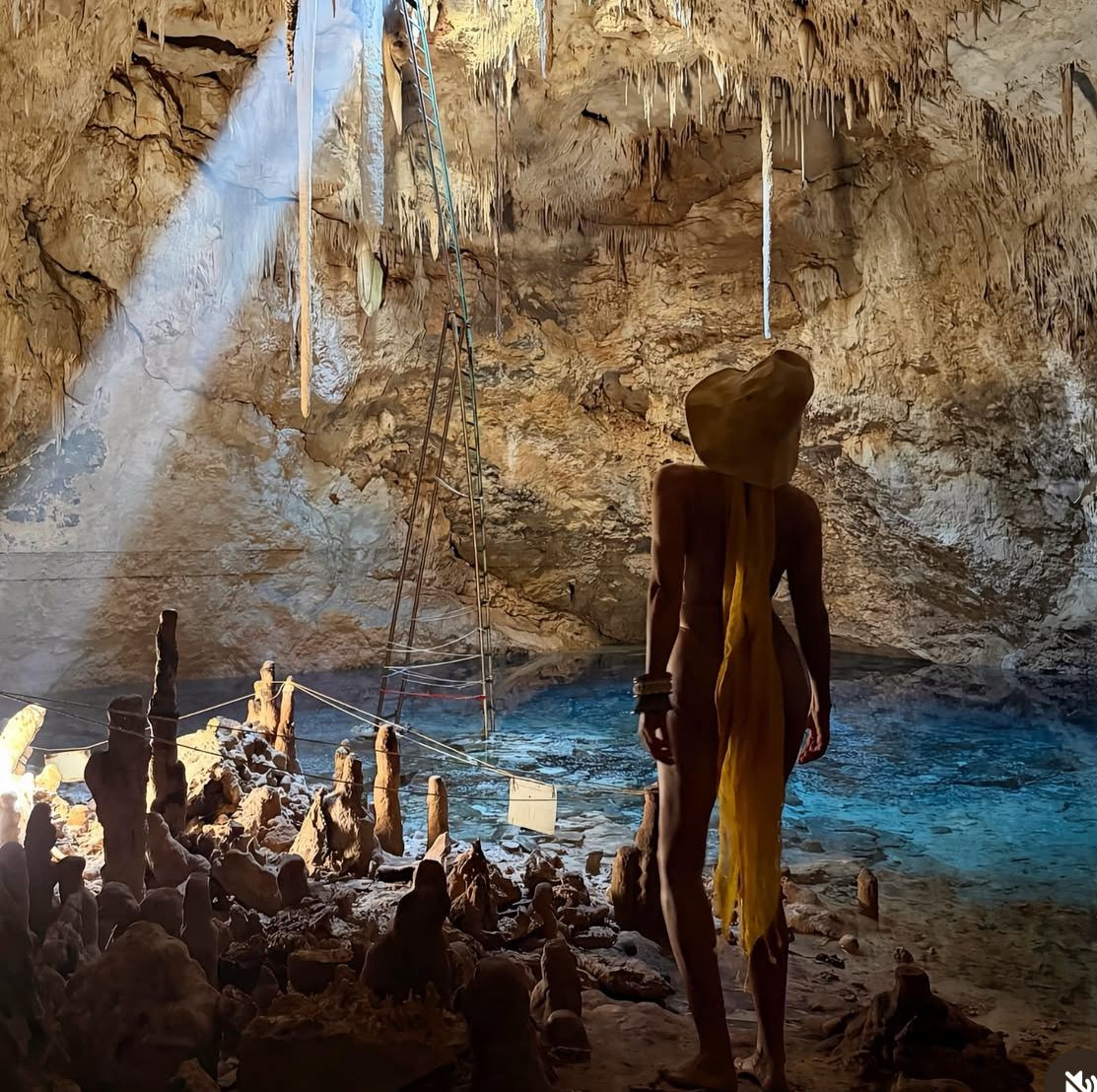 Eda Taşpınar, Los Angeles’tan Meksika’ya uzanan tatilinde Yucatan Yarımadası’ndaki Yeal Utzil su mağaralarında 49 metre derinliğe indi