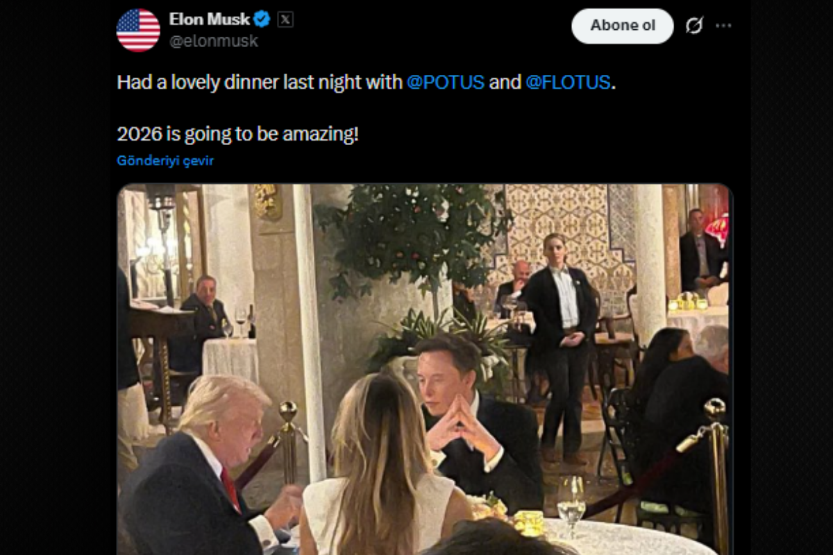 X’teki hesabından akşam yemeği fotoğraflarını paylaşan Elon Musk altına da, “Dün gece Donald Trump ve Melania Trump ile harika bir akşam yemeği yedik. 2026 müthiş olacak!” Notunu düştü.