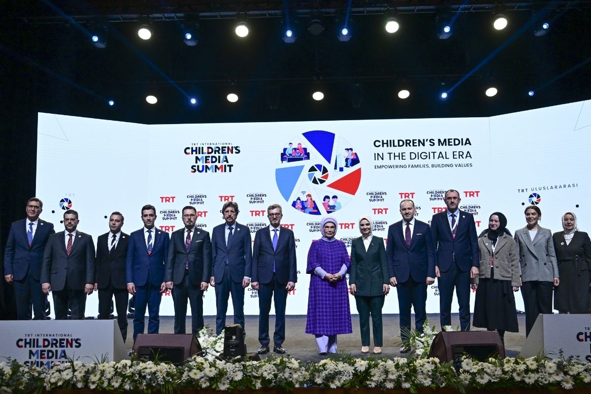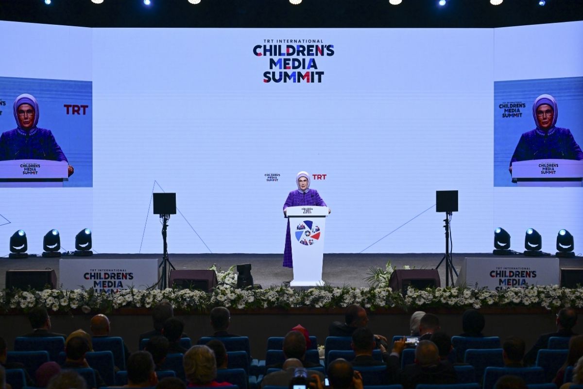 Emine Erdoğan, Haliç Kongre Merkezi'nde "Dijital Çağda Çocuk Medyası: Aileyi Güçlendirmek, Değerler İnşa Etmek" başlığıyla düzenlenen TRT Uluslararası Çocuk Medyası Zirvesi'ne katıldı.