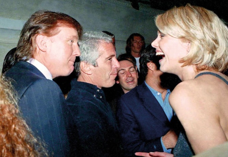 Donald Trump, Jeff Epstein ile birlikte sarışın bir kadınla görülüyor.