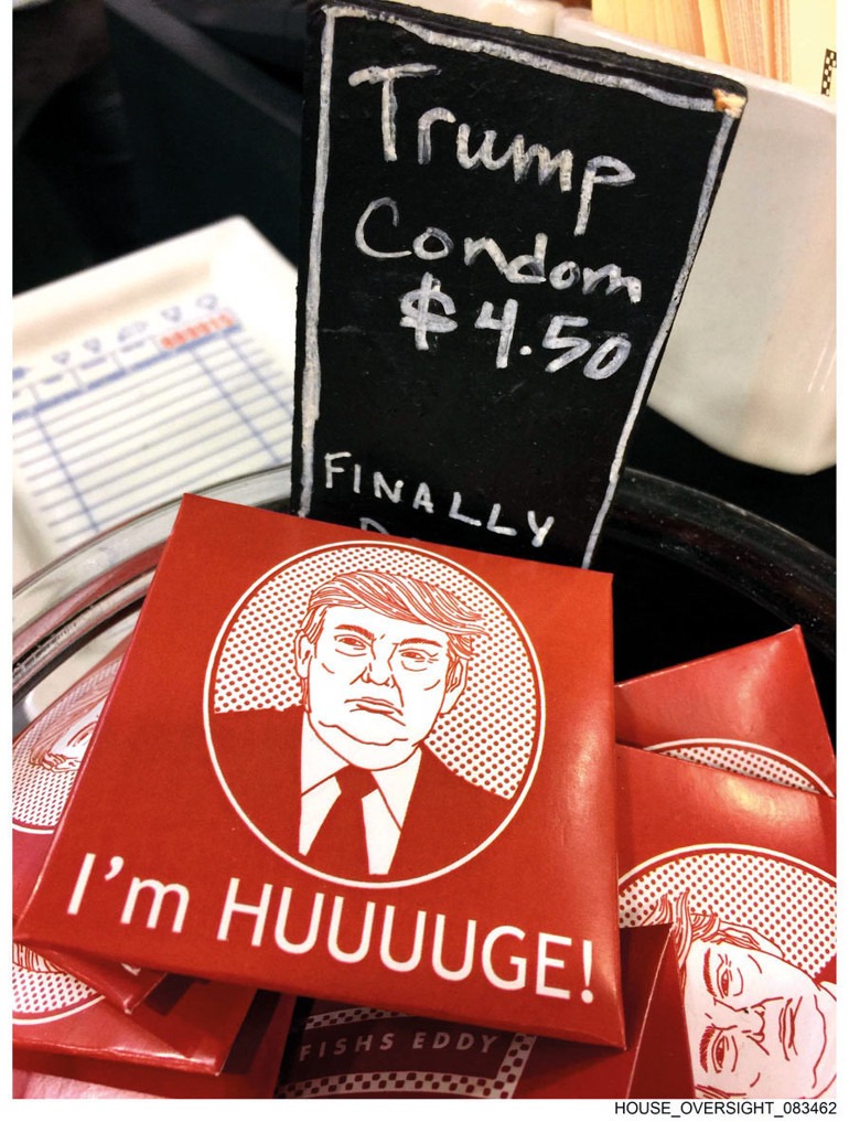 Dosyada Trump yüzünün bulunduğu prezervatiflere dair görüntü de yer aldı.