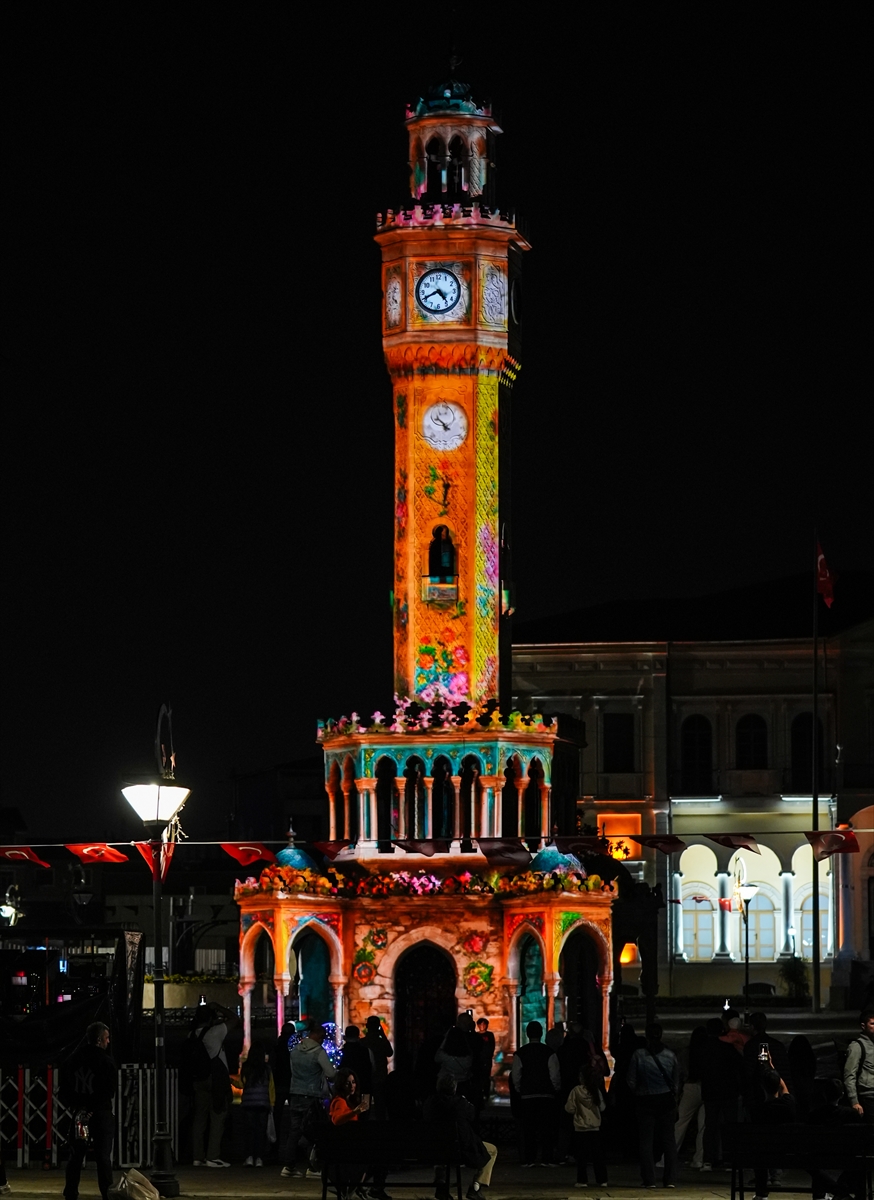 Aslında “İzmir Kültür Yolu Festivali” boyunca üç gün boyunca saat kulesinde üç gece boyunca harika bir ışık, ses ve dijital mapping gösterisi yapılmıştı.