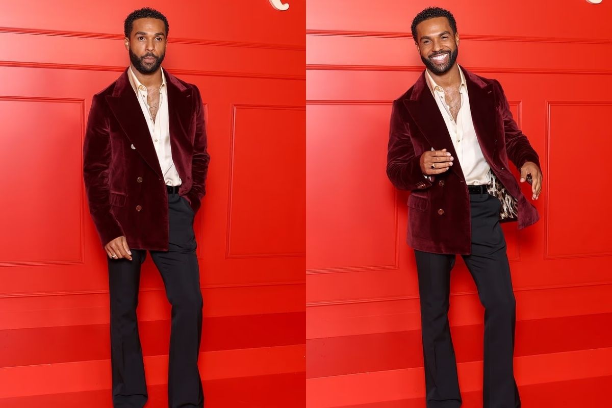 33 yaşındaki Lucien Laviscount, kırmızı kadife ceketi ve beyaz açık yakalı gömleğiyle oldukça şık bir görünüm sergiledi.