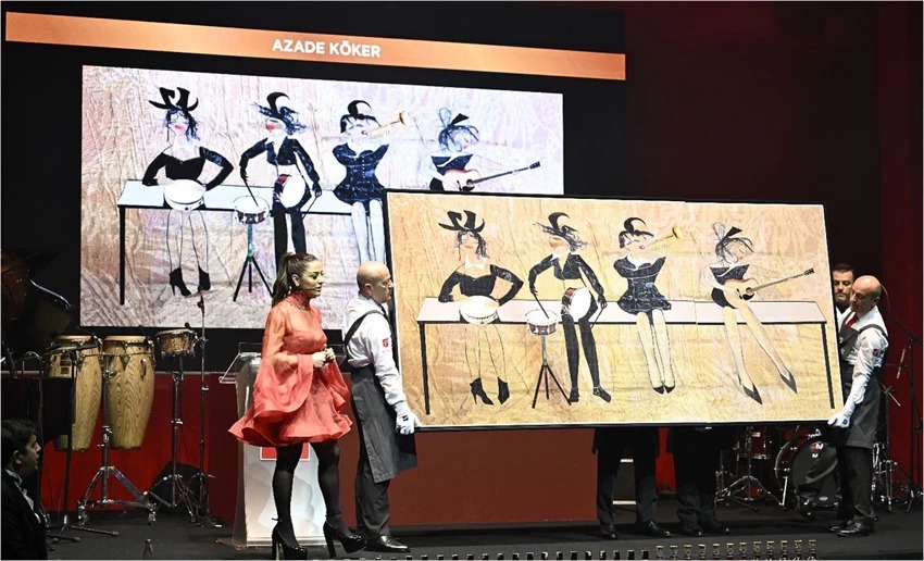 Destek Yarışı'nın en yüksek fiyata alıcı bulan eseri Azade Köker'in Orkestra adlı eseri oldu. Kolajında kadın orkestra üyelerinin gecenin kutlamasının lokomotifi gösterilen eser 6 milyon TL'ye alıcı buldu.