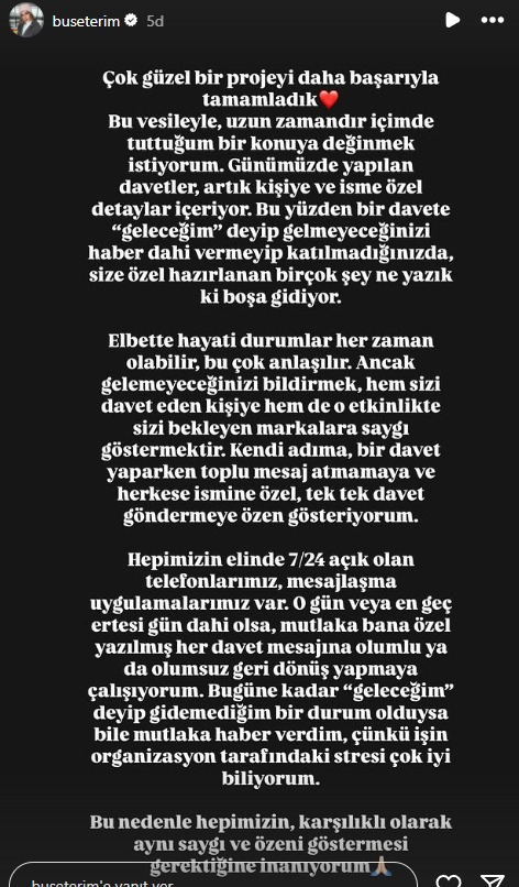Geleceğim deyip gelmeyen davetlilerine çok kızdı: Buse Terim kime ya da kimlere sitem etti?