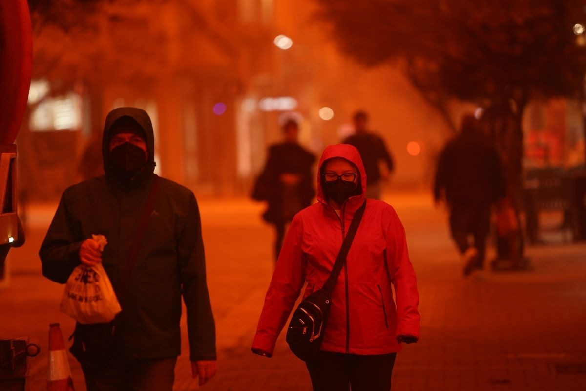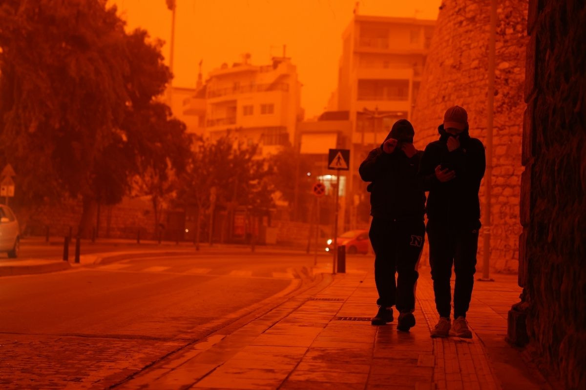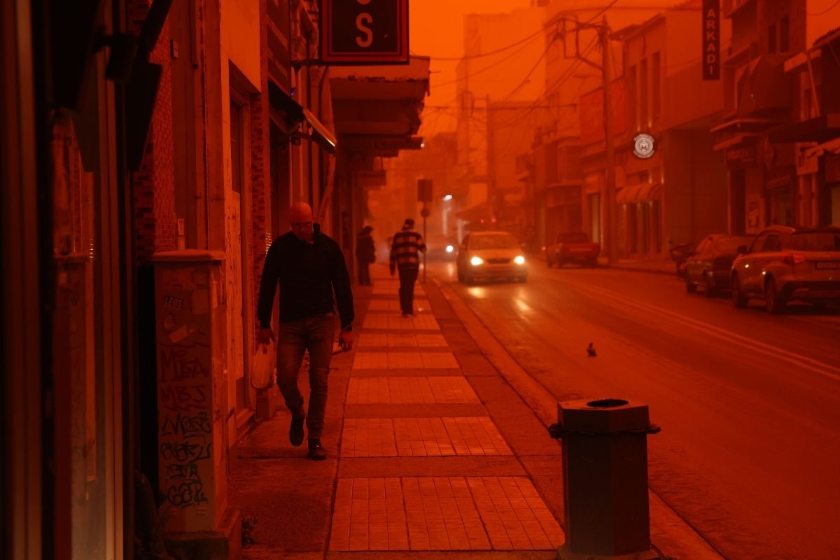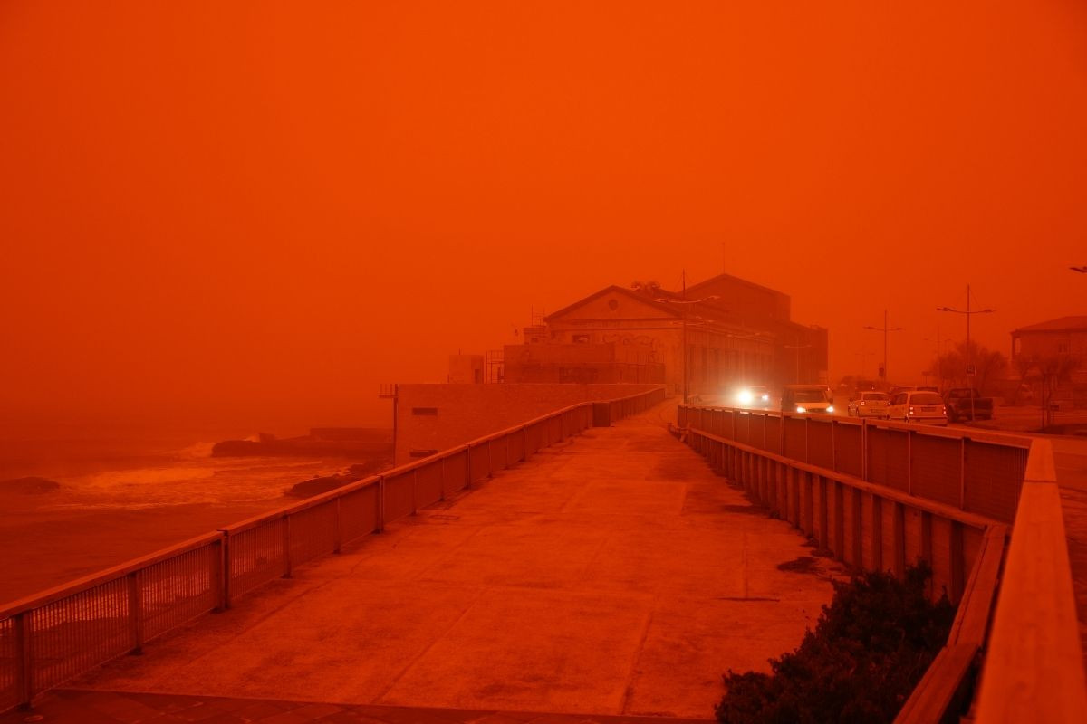 Yunanistan genelindeki kötü hava koşulları devam ederken, Girit Adası’nda gökyüzü Afrika'dan gelen çöl tozu nedeniyle kırmızıya büründü.