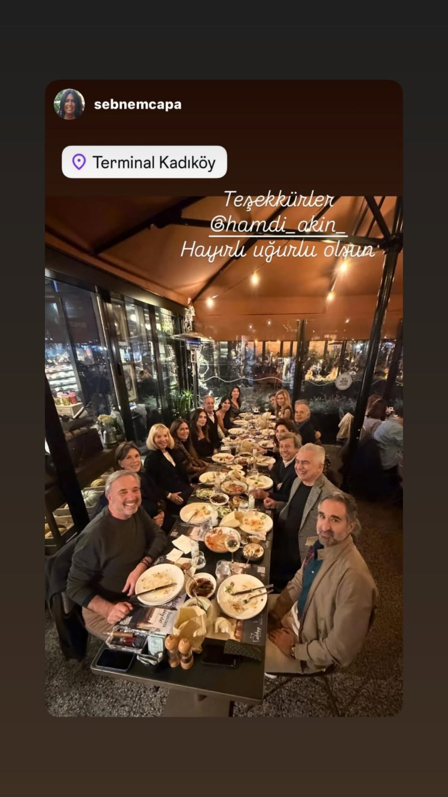 16 kişinin bulunduğu masada yer alan Şebnem Çapa, paylaştığı videolara "Bu akşam müthiş bir yere geldik. Sevgili Hamdi Akın'ın yarattığı tüm street food lezzetlerinin olduğu harika bir nokta. İnsan ne yiyeceğini şaşırır. Mutlaka görmenizi ve bu lezzetleri tatmanızı tavsiye ederim. Hakikaten yok yok. Buranın harika bir ismi var: Yedideyediterminal. Teşekkürler Hamdi Akın. Hayırlı uğurlu olsun" notunu yazdı.