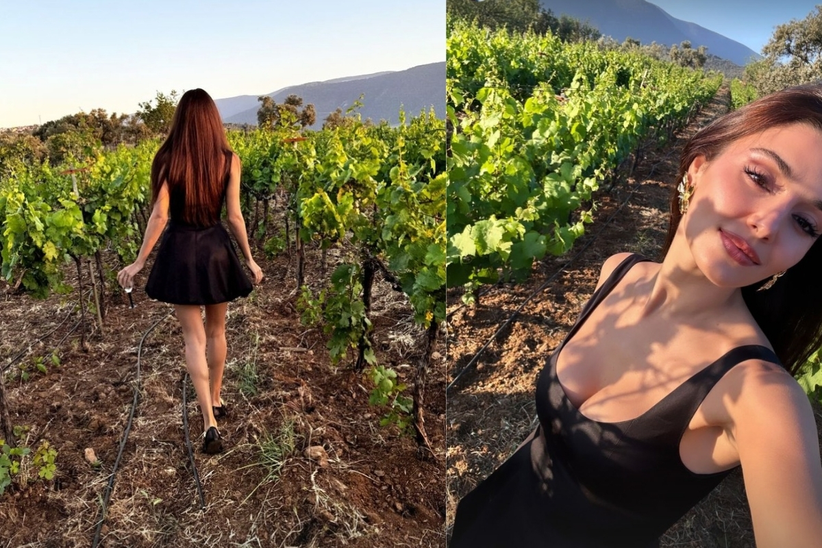 Oyuncu Hande Erçel, arkadaşları ve sevgilisi Hakan Sabancı ile çıktığı gezintide üzüm bağları arasında poz verdi.