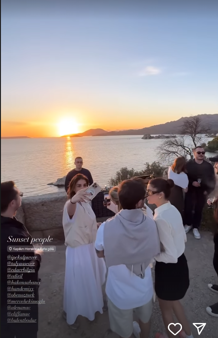 İpek Sever, Talya Sever, Eda Erbilgin, Oben Öztürk, Merve Hekimoğlu, Alen Anav, Elif Anav ve Bülent Bodur arkadaşlarıyla seyahate çıkan Sabancı ve Erçel çifti anlarını sosyal medya hesabından paylaştı.