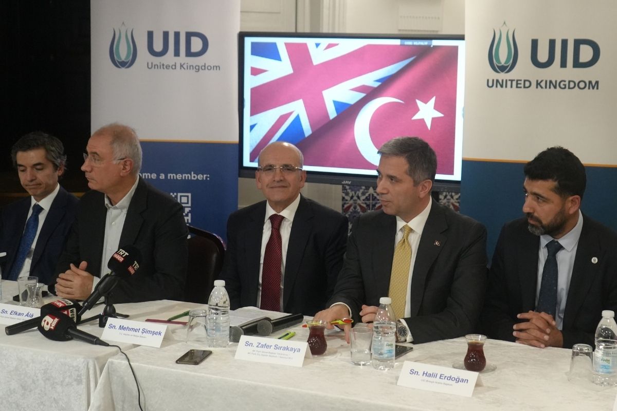 Şimşek, Londra'da Uluslararası Demokratlar Birliği (UİD) tarafından düzenlenen İngiltere Halk Buluşması'nda küresel ve Türkiye ekonomisine ilişkin açıklamalarda bulundu.