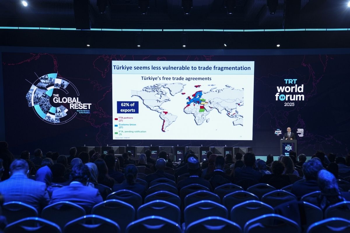 Hazine ve Maliye Bakanı Mehmet Şimşek, İstanbul'da düzenlenen TRT World Forum 2025 programında "Ekonominin Ön Safları: Ticaret Çatışmaları ve Yeni Küresel Rekabetler" başlıklı konuşma gerçekleştirdi.