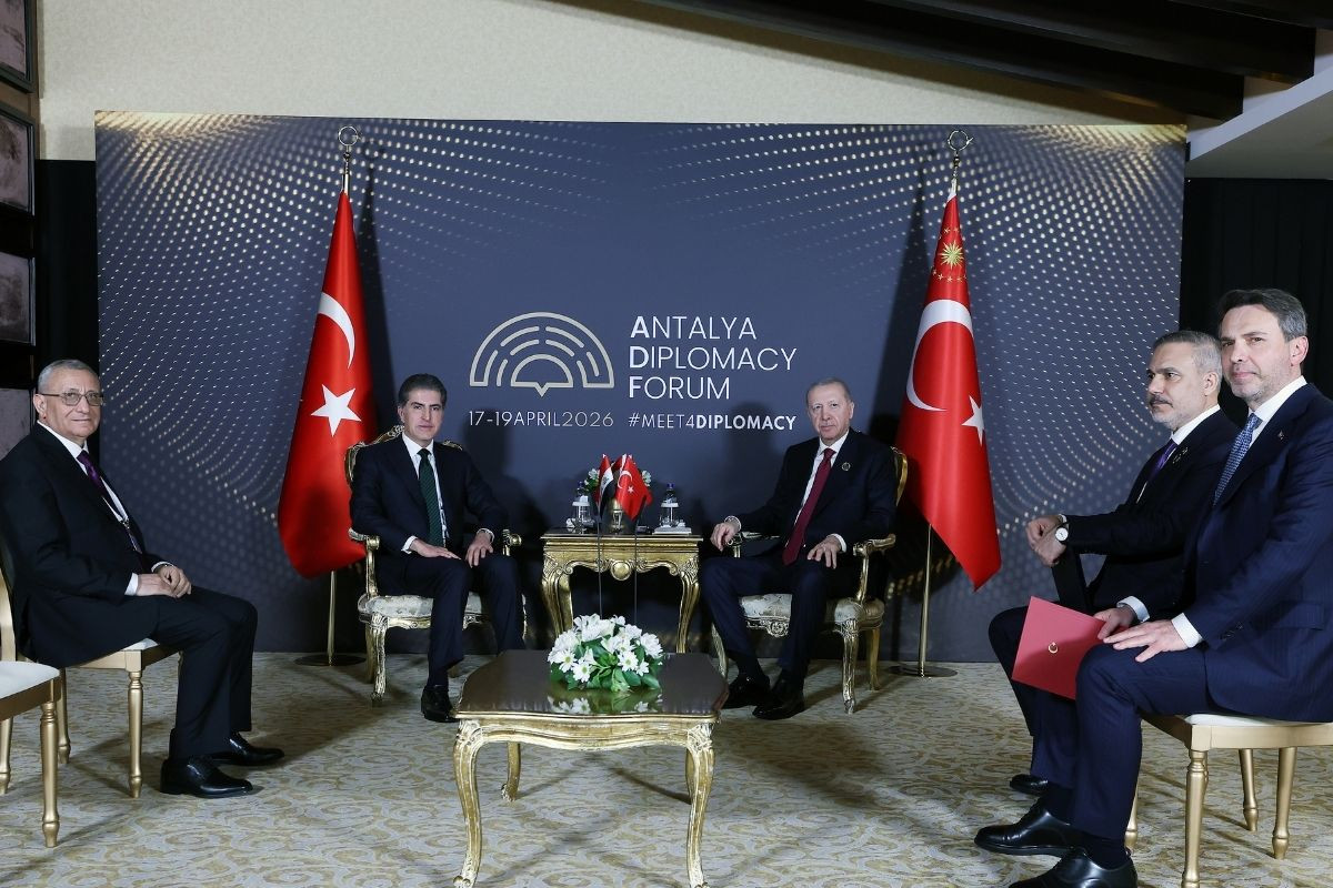 Cumhurbaşkanlığı İletişim Başkanlığı, Erdoğan'ın Barzani ile Belek Turizm Bölgesi'ndeki NEST Kongre Merkezi'nde düzenlenen Antalya Diplomasi Forumu 2026 kapsamındaki görüşmesine ilişkin açıklama yaptı.