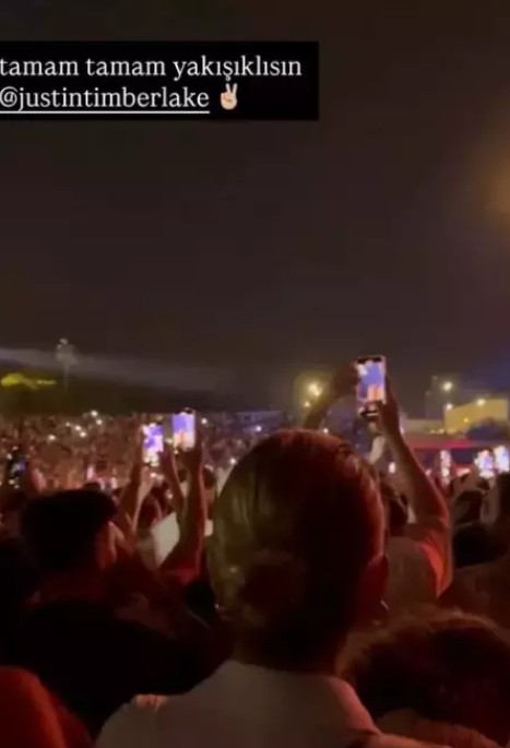 Ünlü şarkıcı Gülben Ergen, konserde çekilen videosuna Justin Timberlake'i etiketleyerek "Tamam tamam yakışıklısın" notunu düştü.