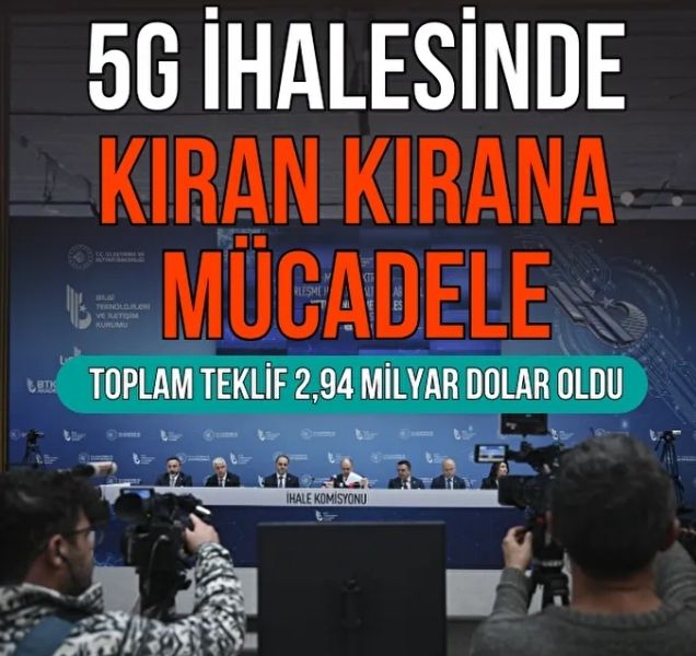Türkiye’nin 5G dönemini resmen başlatan frekans ihalesi tamamlandı. Bilgi Teknolojileri ve İletişim Kurumu (BTK) tarafından düzenlenen ihalede toplam bedel, yüzde 20 KDV hariç 2 milyar 945 milyon dolar olarak gerçekleşti.