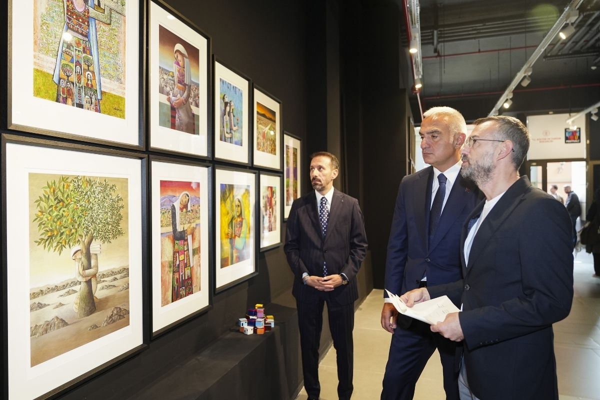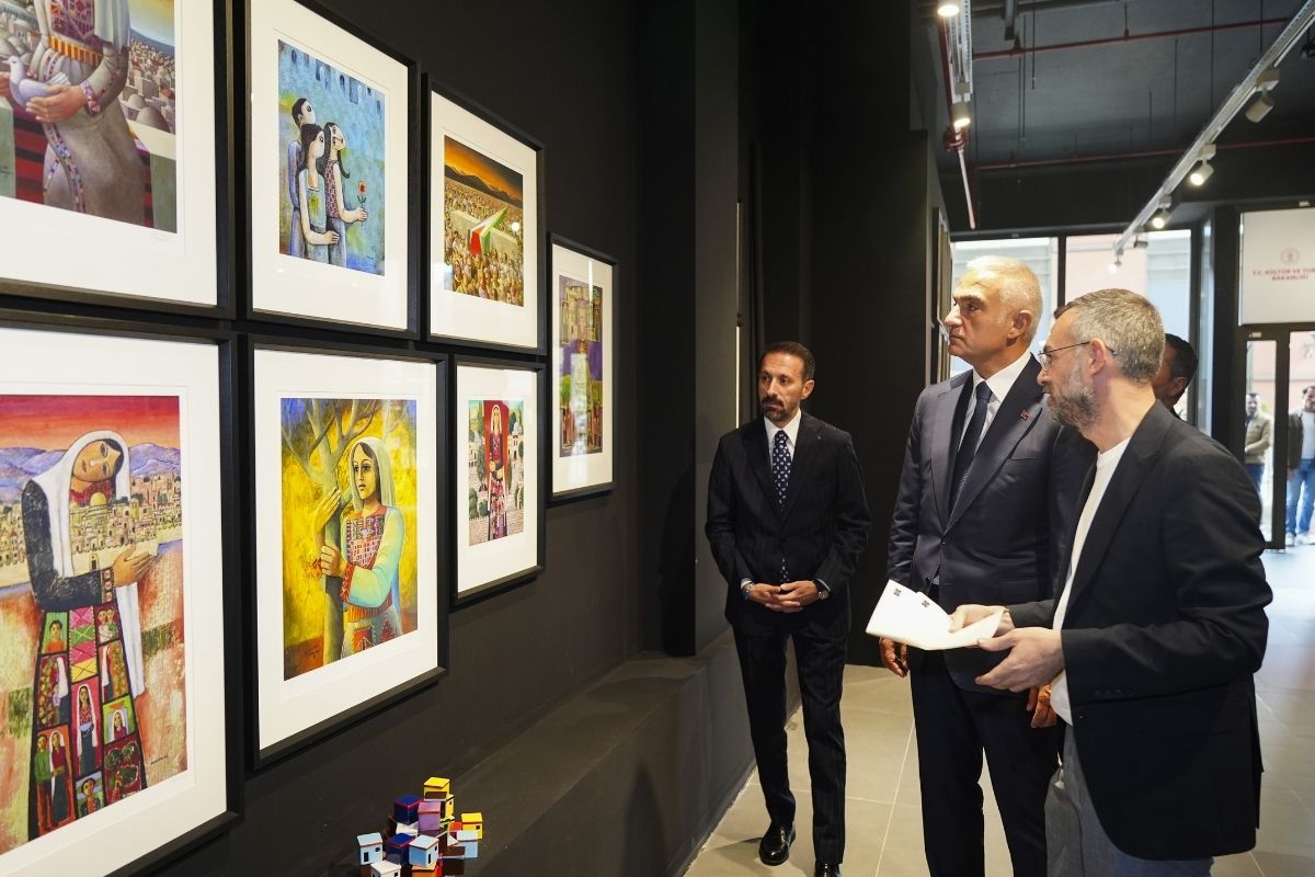 Kültür ve Turizm Bakanı Mehmet Nuri Ersoy, Filistinli sanatçıların "Hala Yaşıyorum" sergisini gezdi