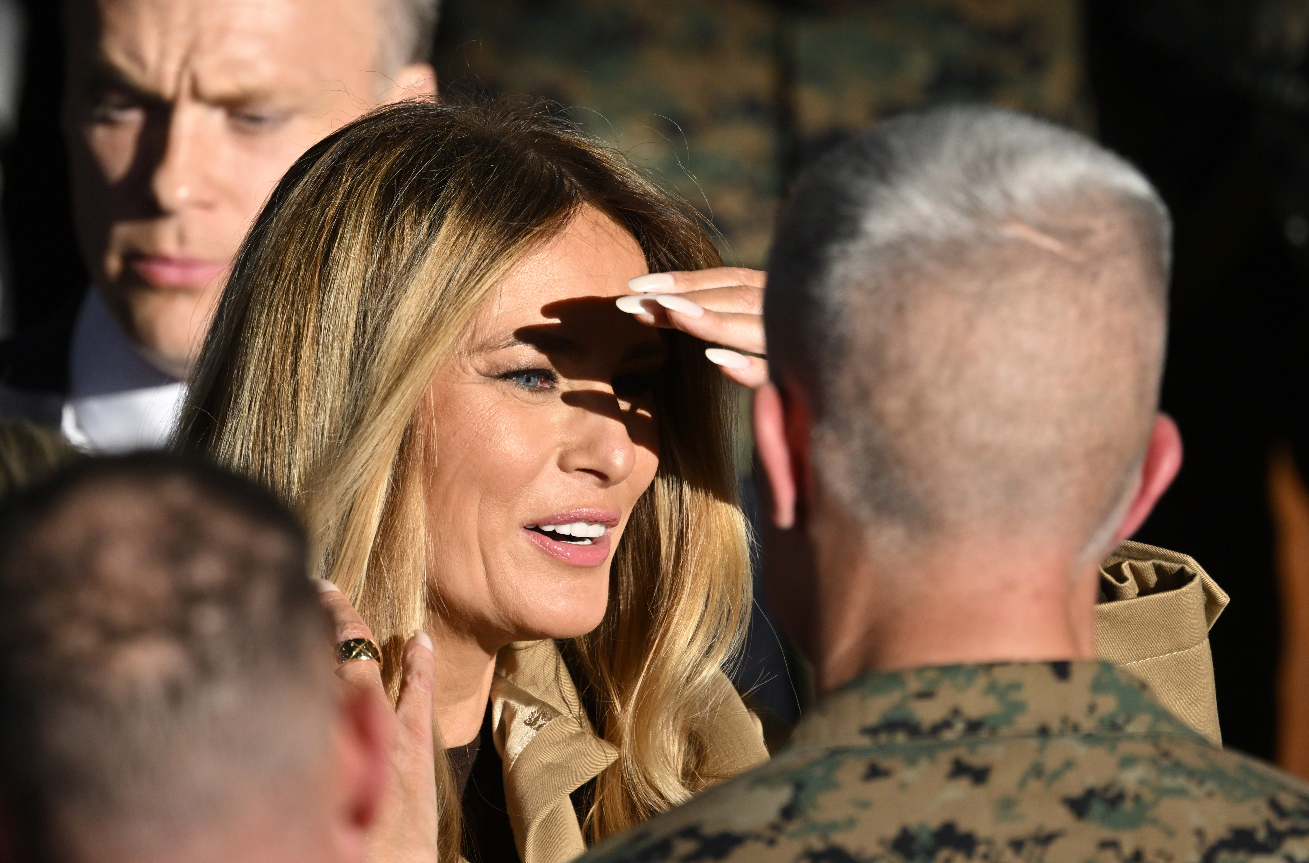 Melania Trump Kuzey Carolina’daki askeri üsleri ziyaret etti üniforma giyip komutanlarla birlikte poz verdi