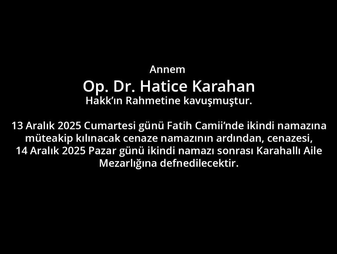 TCMB Başkanı Karahan, sosyal medya hesabından yaptığı paylaşımda, annesi Opr. Dr. Hatice Karahan'ın vefaat ettiğini duyurdu.