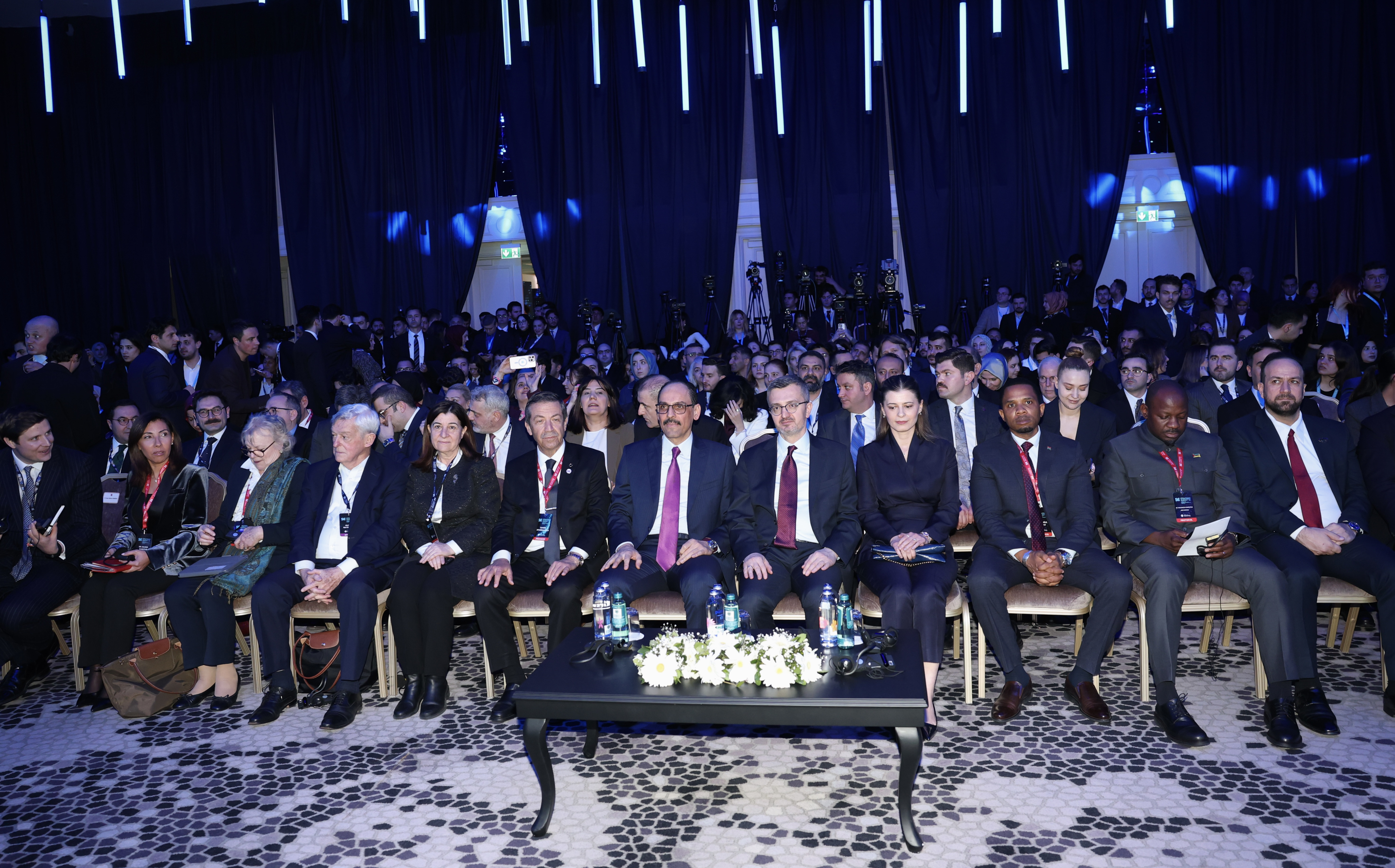 "Geçen sene haziran ayında yaşanan 12 günlük İsrail-İran savaşı, şu anda içinde bulunduğumuz savaşın fiili şartlarını da test eden, ortaya çıkaran bir niteliğe sahip idi. Şu anda ise 28 Şubat'ta başlayan, 1 aydır devam eden İsrail-ABD-İran savaşının ortasında bulunuyoruz. Bu savaşı önlemek, ilk planda ortaya çıkmasını engellemek için Cumhurbaşkanımızın liderliğinde Dışişleri Bakanımız, Milli Savunma Bakanımız, bizler, İletişim Başkanlığımız ve diğer ilgili tüm arkadaşlarımızla çok yoğun bir çaba sarf ettik. Her seferinde öngörülemezlik, kırılganlık, gücün keyfi kullanımı üzerine dayalı bir dünya sisteminin ancak yeni krizler ve savaşlar üreteceğini ifade ederek, bu tür çatışmaların ve yıkımların yaşanmaması için yoğun bir çaba sarf ettik. Bugün bu savaşın ortasında, yaklaşık 1 aylık süre içerisinde bir bu savaşın sona erdirilmesi, iki Türkiye'nin bu savaşın dışında tutulması için yoğun bir çaba sarf ettik."