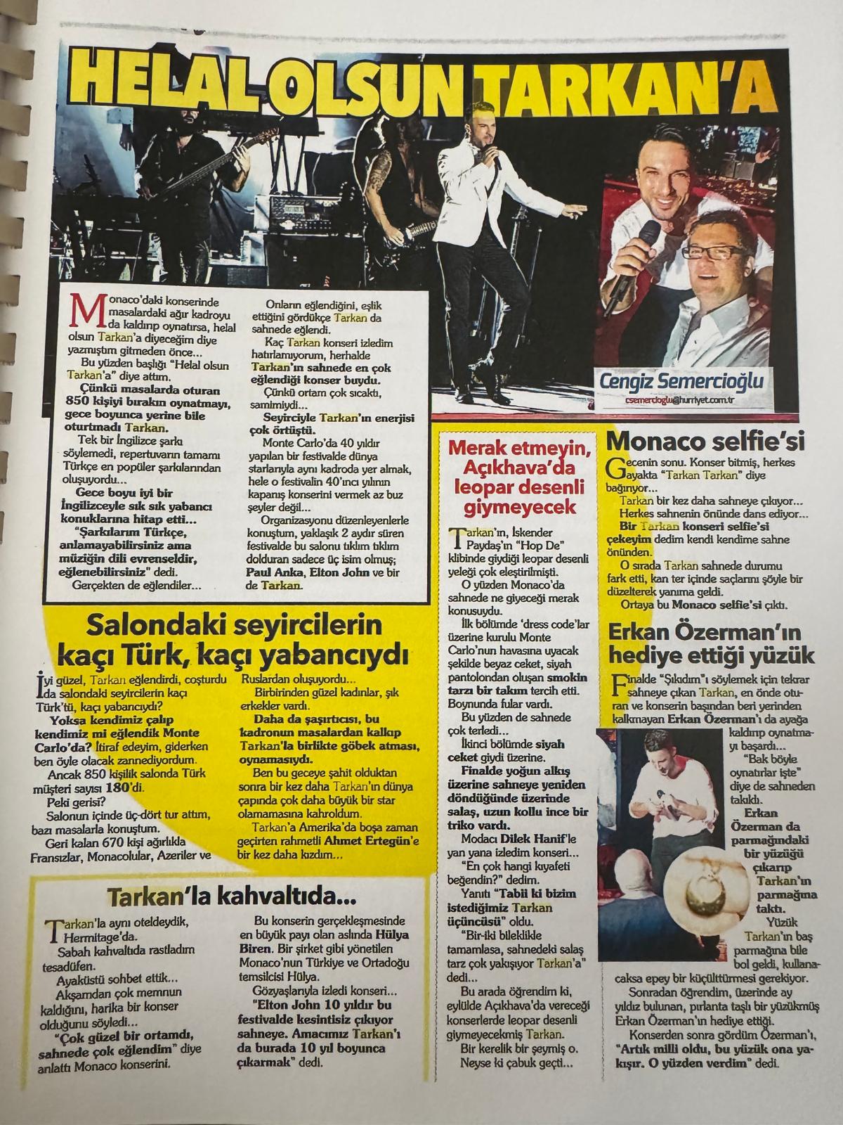 Tabii ki Monako’yu dört kez fethetmiş olan Megastarımız Tarkan verdiği konserlerle Monako luları kendine aşık etti ve 2026 yılında acaba Tarkan tekrar konser verir mi sorusunu kaç kez duydum sayamadım !